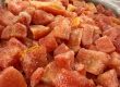 - Положите нарезанный кубиками картофель и болгарский перец. Влейте немного воды, накройте крышкой и тушите на среднем огне около 15-20 минут до готовности картофеля.
