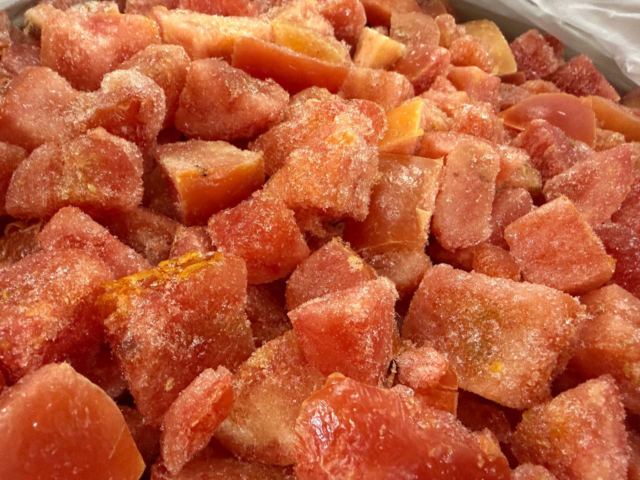 - Овощное рагу или аджапсандали: Замороженные томаты — идеальная основа для любого рагу. Они создают ту самую наваристую, ароматную среду, в которой тушатся остальные овощи .