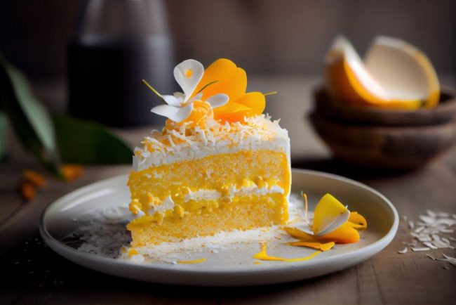 Ингредиенты: Для теста: Манго замороженный – 1 штука * Яйца куриные – 4 штуки * Мука – 100 г * Кокосовая мука – 40 г Разрыхлитель теста – 1 ч.л. * Лимонная цедра – 1 ч.л. * Сахар – 150 г * Соль – на кончике ножа Для крема: Сливки – 500 г * Кокосовая стружка – 100 г * Сахар – 150 г * Ванилин – на кончике ножа Пошаговый рецепт приготовления: 1.Манго очистите от кожуры, удалите косточку, мякоть измельчите. 2.Яйца взбейте с сахаром и солью до пышной…